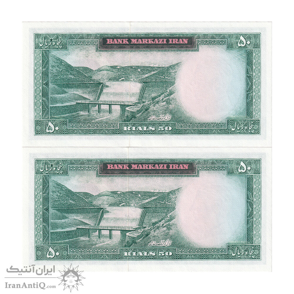 اسکناس 50 ریال (آموزگار - فرمان فرماییان) - جفت - UNC63 - محمد رضا شاه