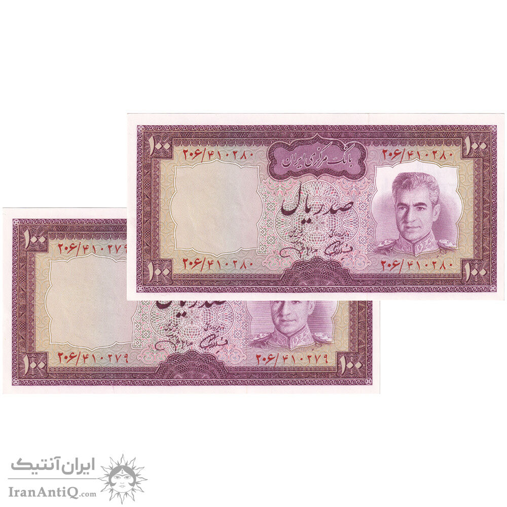 اسکناس 100 ریال (آموزگار - جهانشاهی) - جفت - UNC63 - محمد رضا شاه