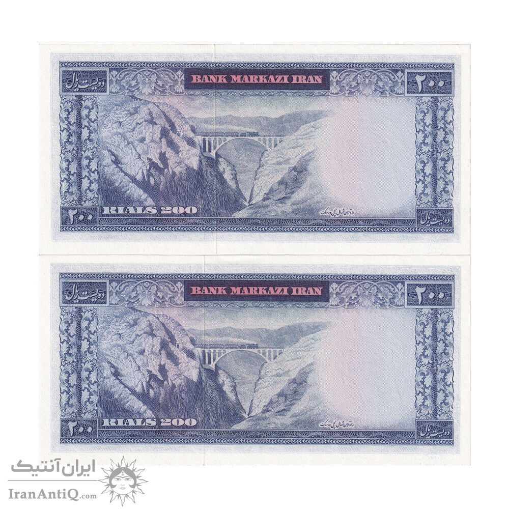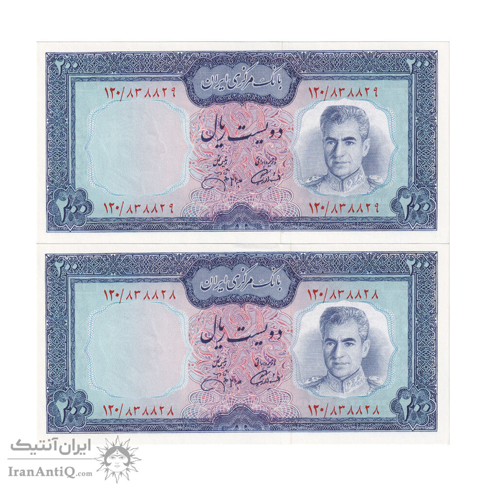 اسکناس 200 ریال (آموزگار - جهانشاهی) - جفت - UNC63 - محمد رضا شاه