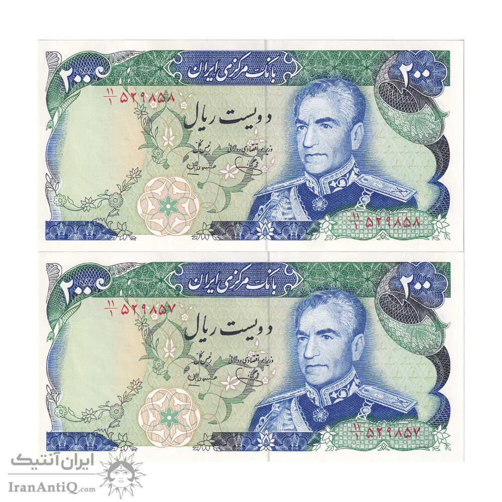 اسکناس 200 ریال (یگانه - مهران) - جفت - UNC64 - محمد رضا شاه