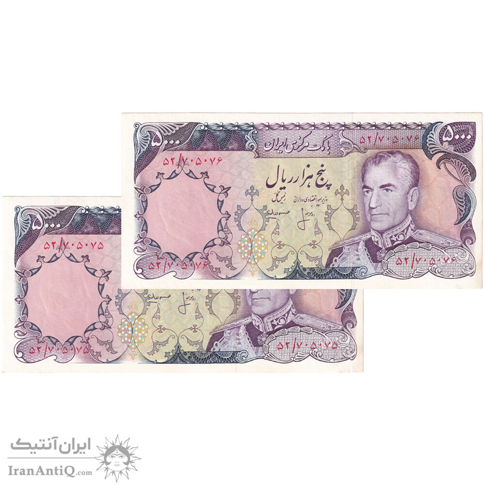 اسکناس 5000 ریال (انصاری - مهران) - جفت - AU55 - محمد رضا شاه