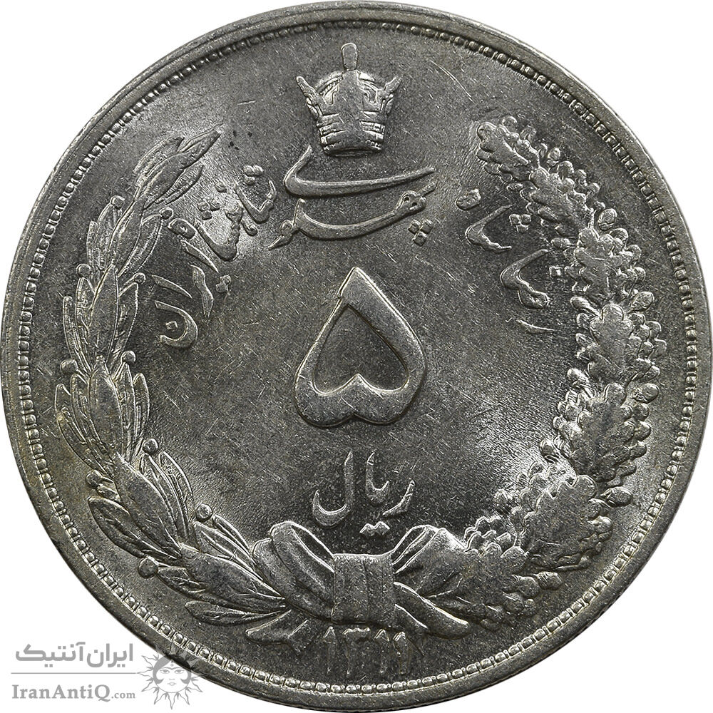 Iran 5 rials 1311 coin - MS63 - reza Shah pahlavi