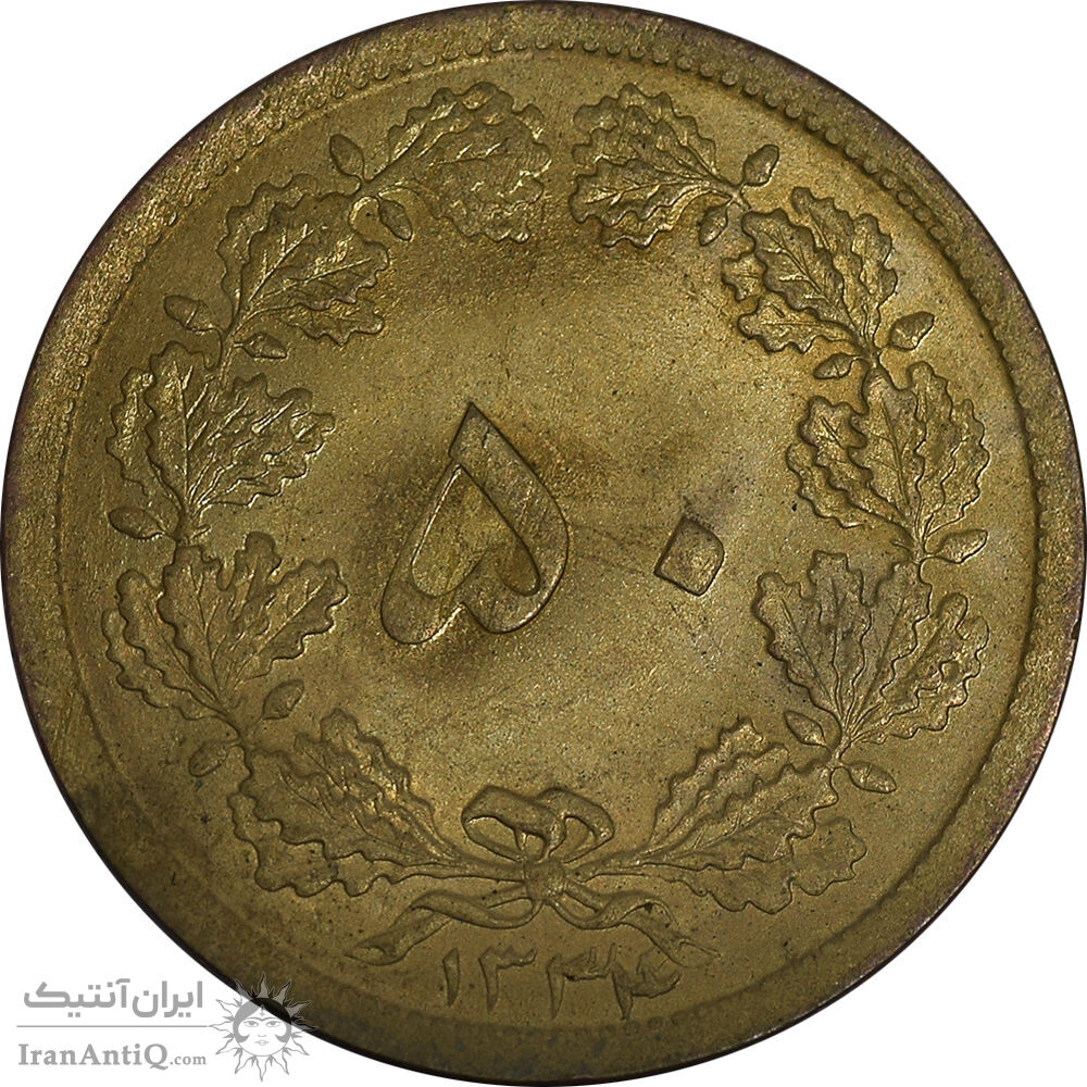 سکه 50 دینار 1334 برنز - MS63 - محمد رضا شاه