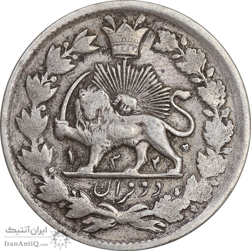 iran 2 krans 1325 coin - 5 date upside down - VF35 - Mohammad ali shah