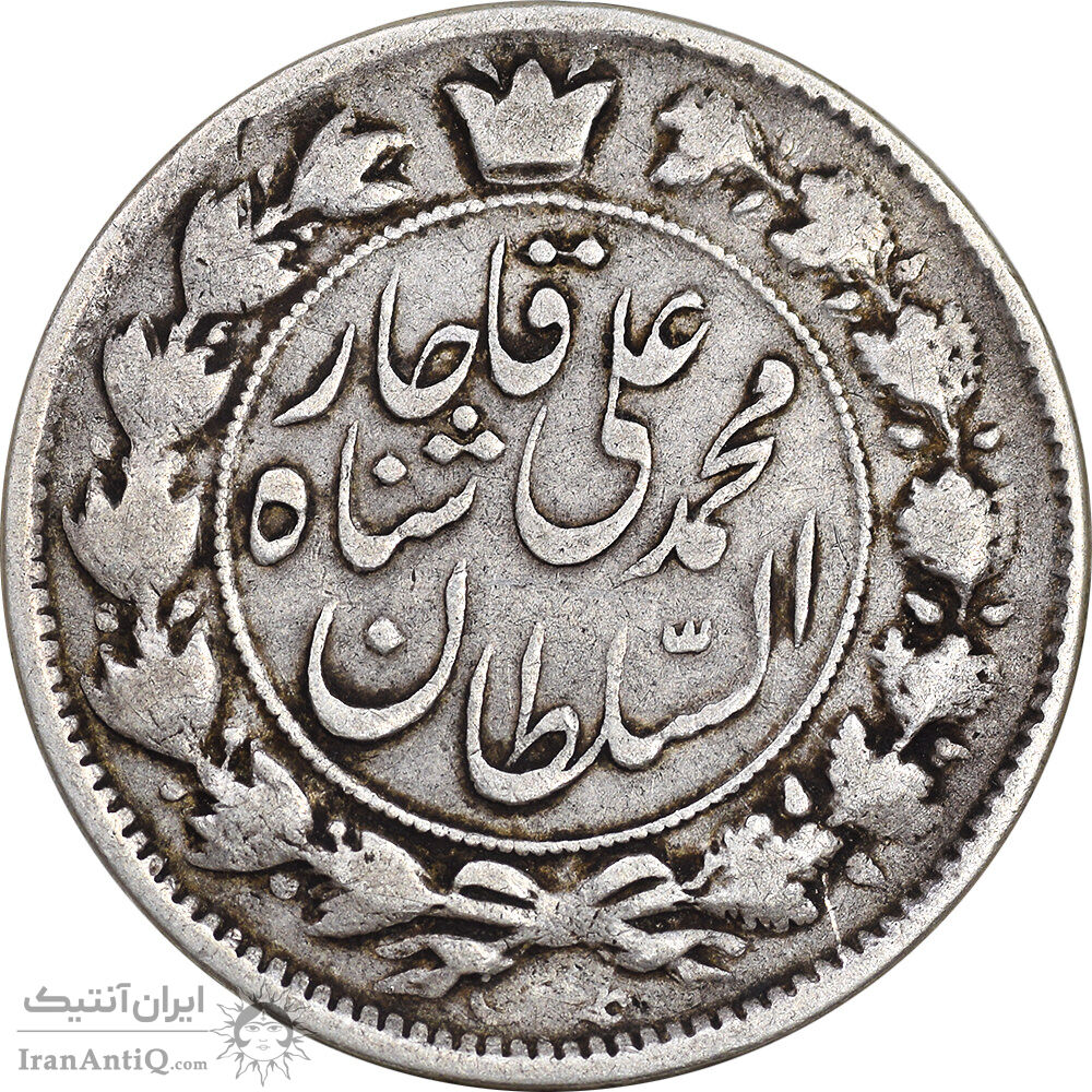 Iran 2 krans 1327 coin - double die date - VF35 - Mohammad ali shah