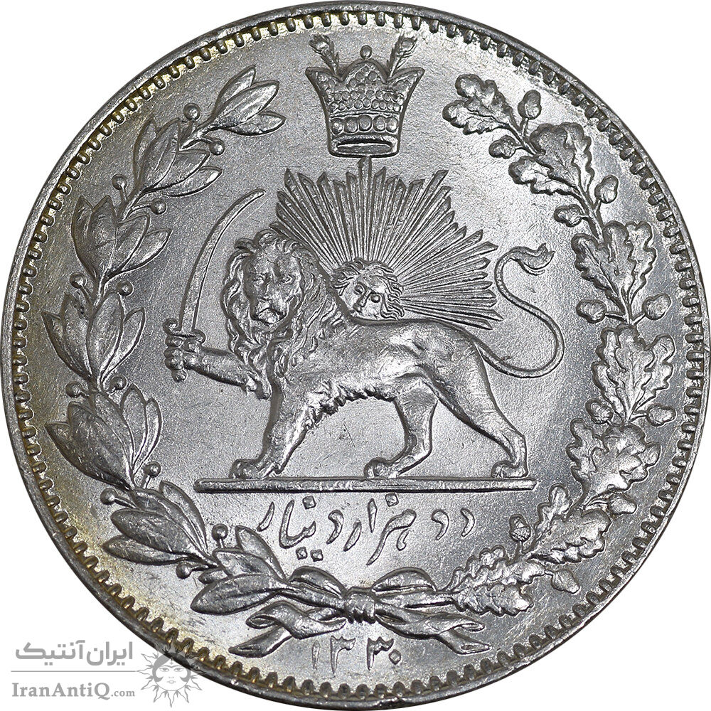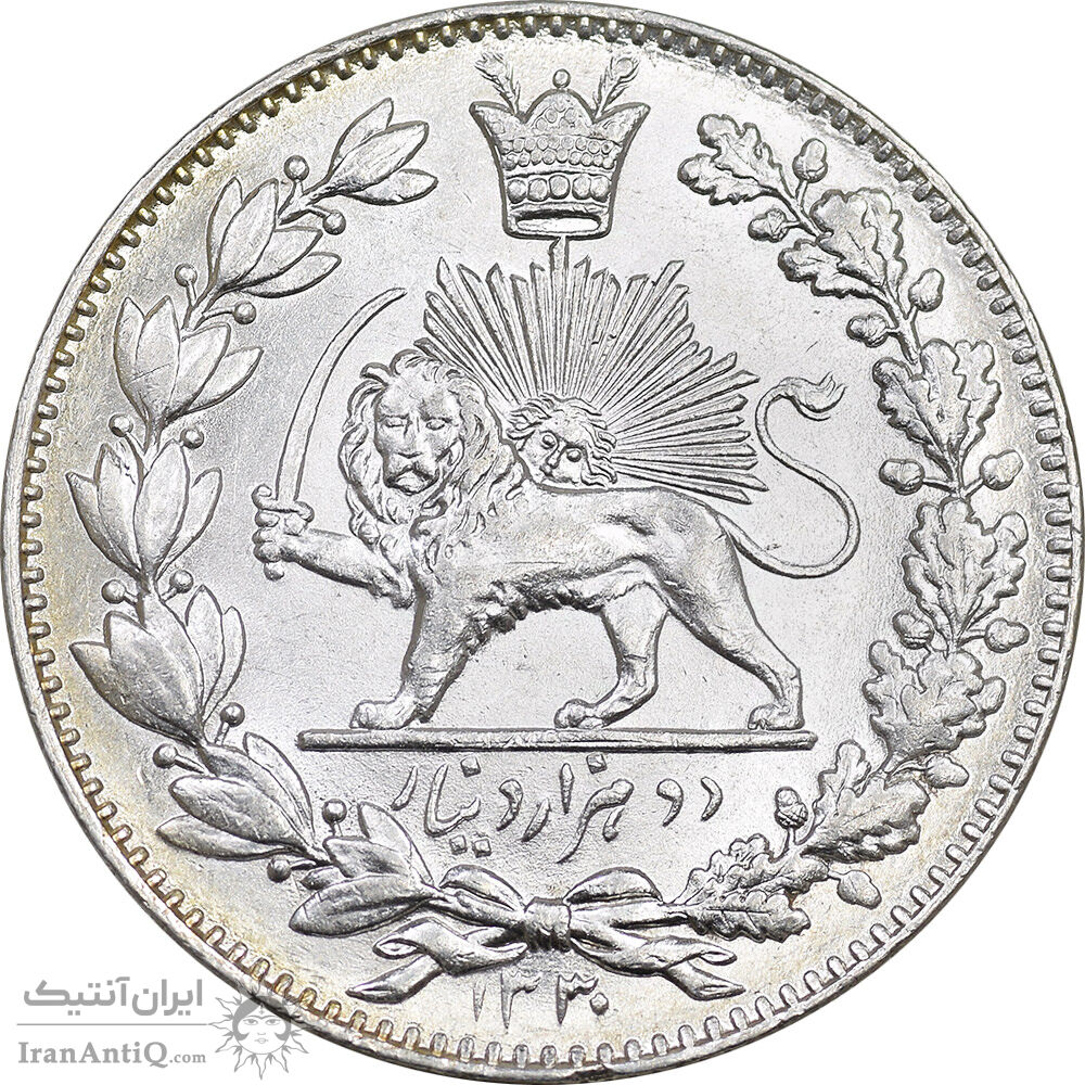 iran 2000 dinars 1330 coin - variety lion - MS64 - ahmad shah