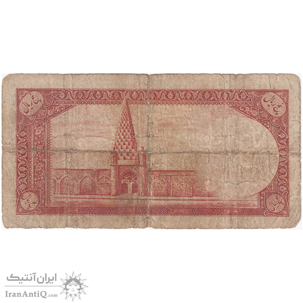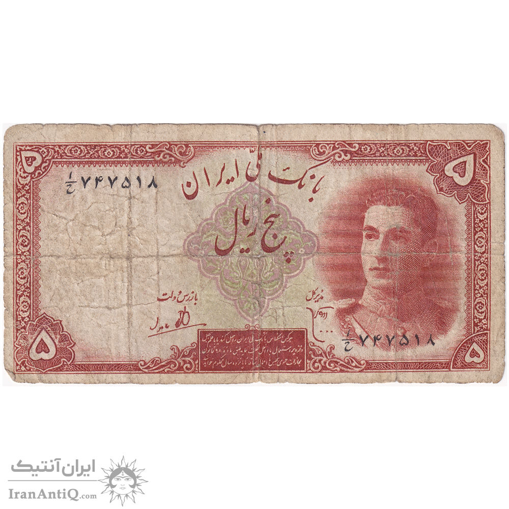 اسکناس 5 ریال - تک - VG - محمد رضا شاه