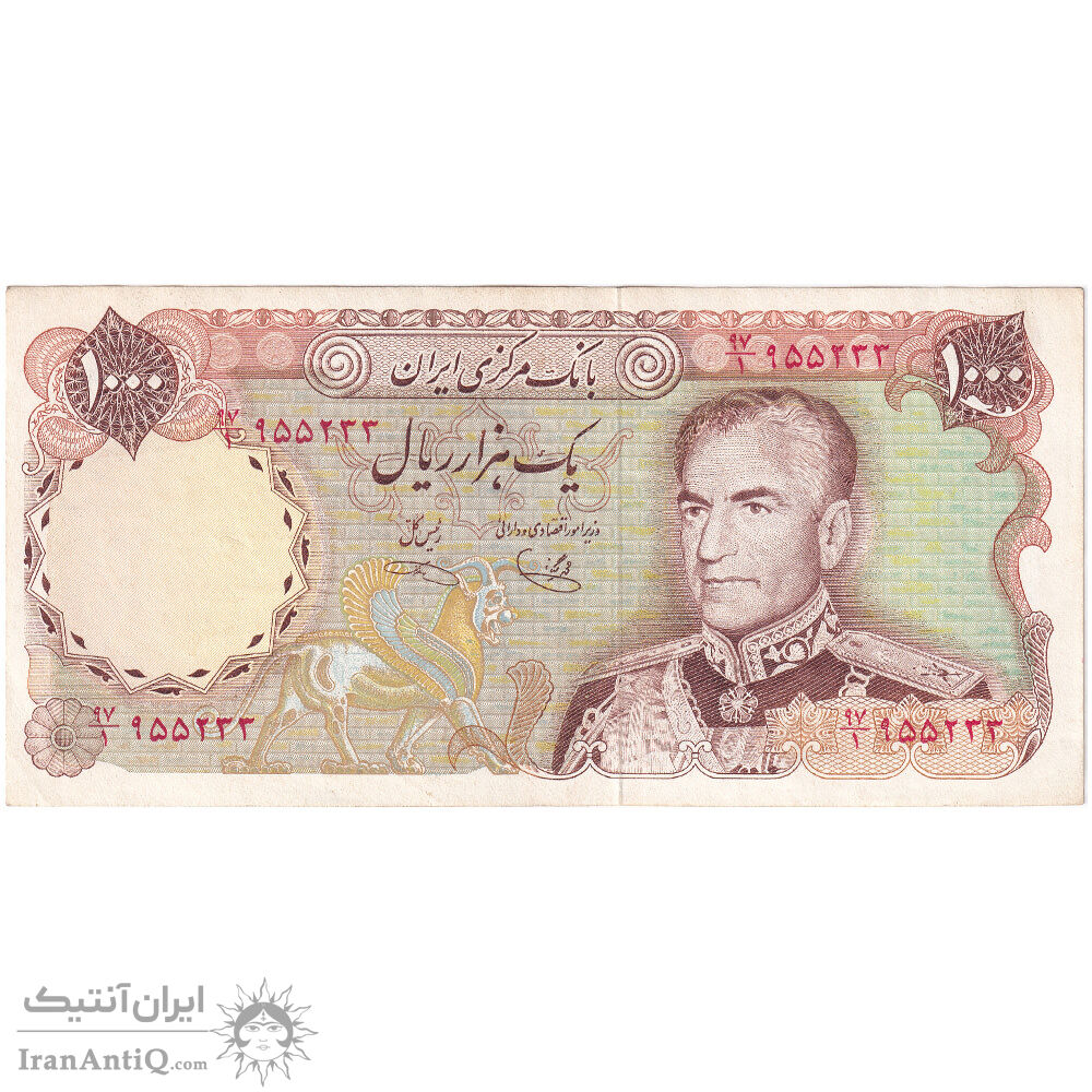 mohammad reza shah 1000 rials (yegane - khushkish) iran banknote - AU50