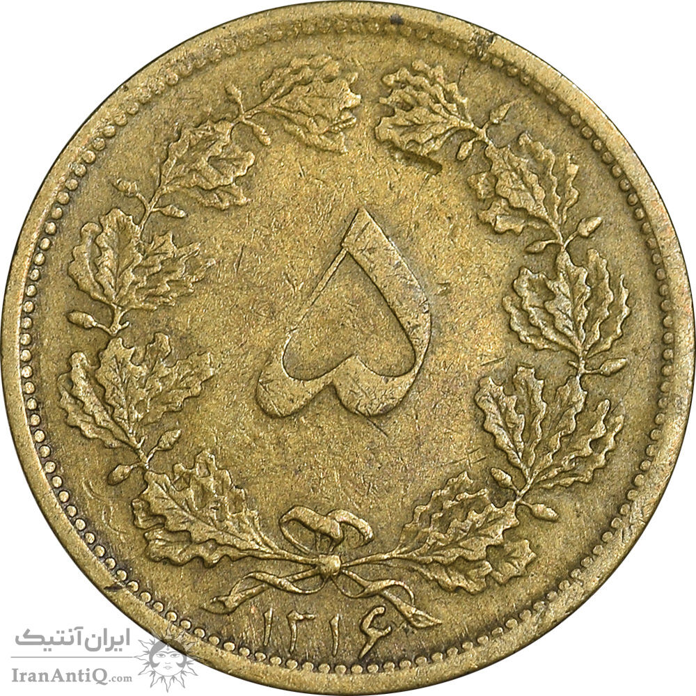 سکه 5 دینار 1316 برنز - VF35 - رضا شاه