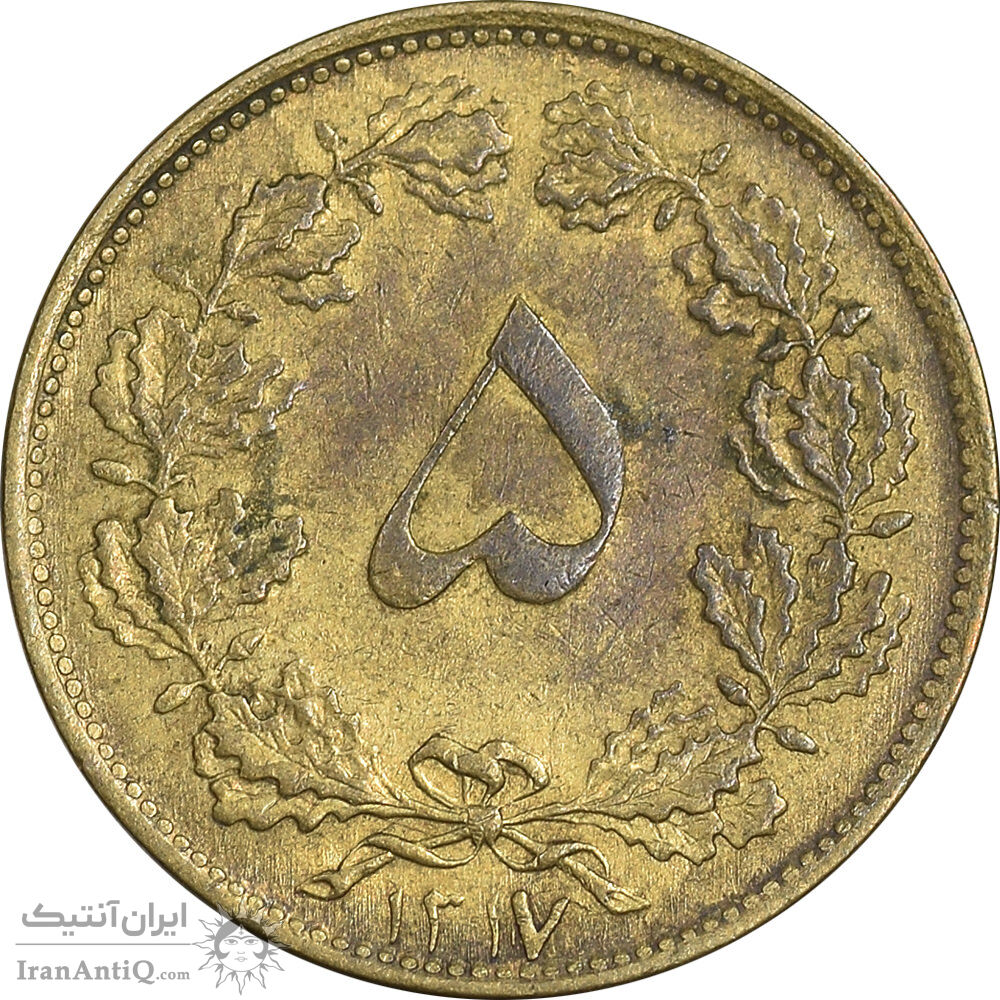 سکه 5 دینار 1317 برنز - EF45 - رضا شاه