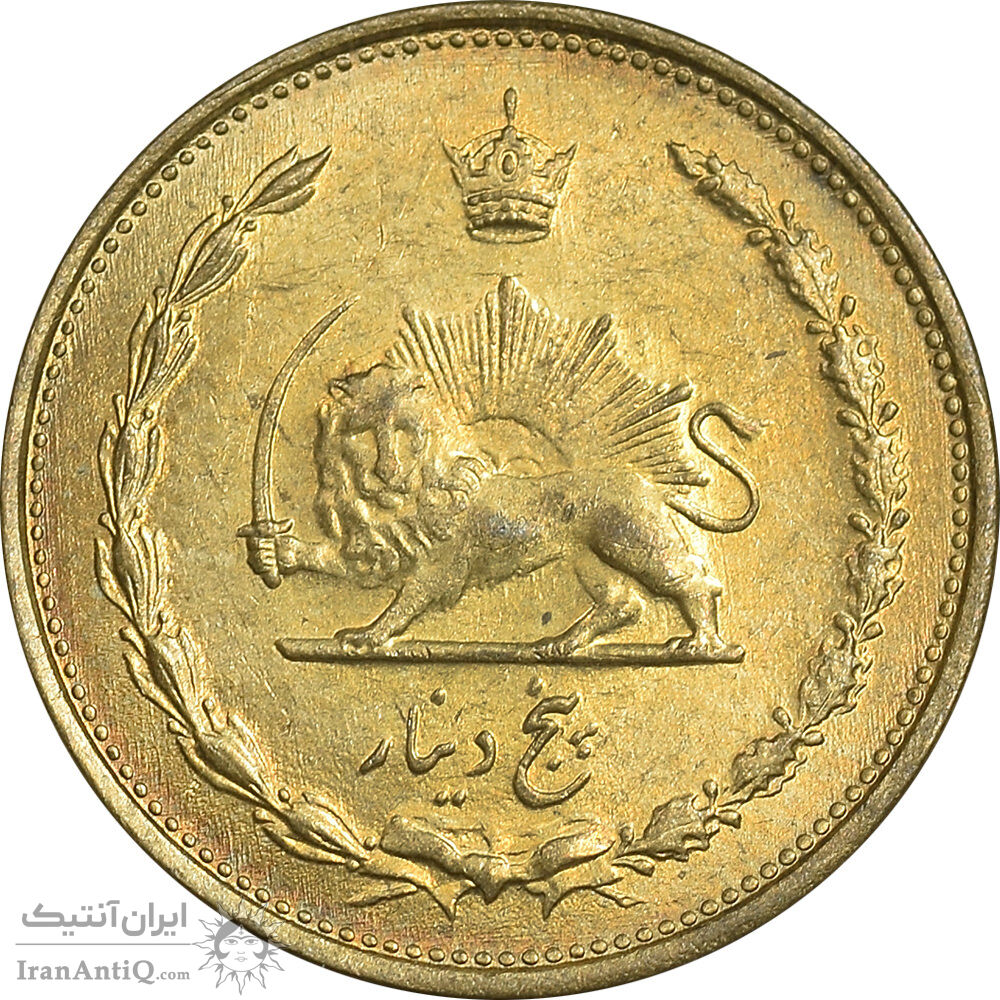 Iran 5 dinars 1318 coin - MS61 - reza Shah pahlavi