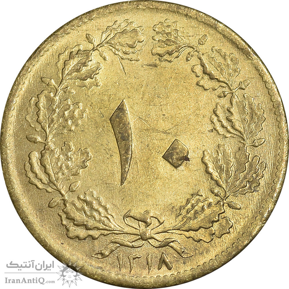 Iran 10 dinars 1318 coin - MS61 - reza shah pahlavi
