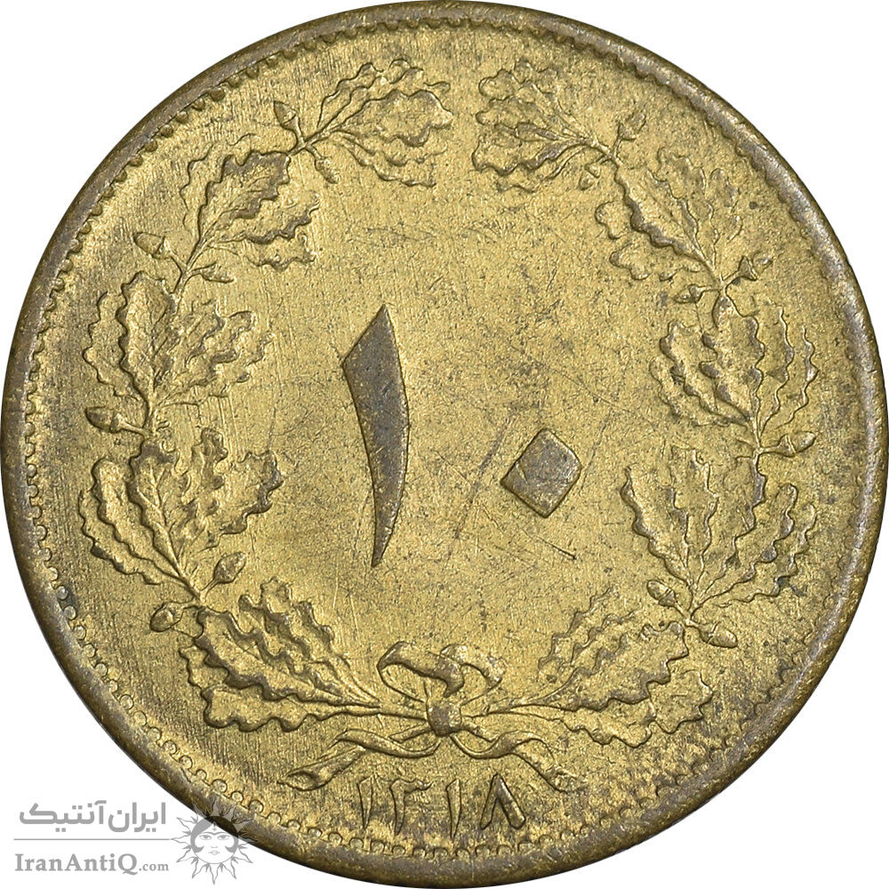 سکه 10 دینار 1318 برنز - AU53 - رضا شاه