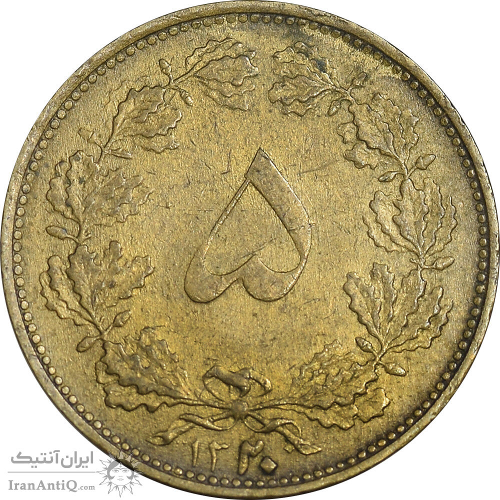 سکه 5 دینار 1320 برنز - VF35 - رضا شاه