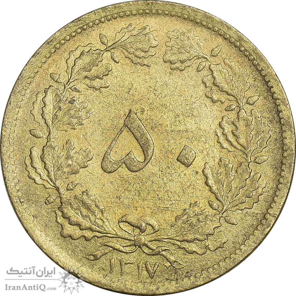 سکه 50 دینار 1317 برنز - AU55 - رضا شاه