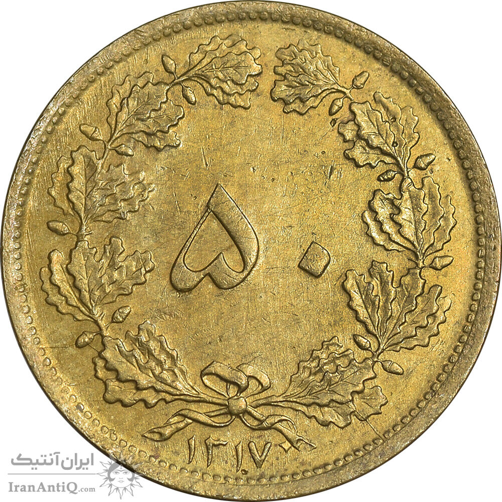 سکه 50 دینار 1317 برنز - EF45 - رضا شاه