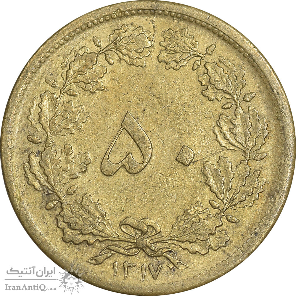 سکه 50 دینار 1317 برنز - EF40 - رضا شاه