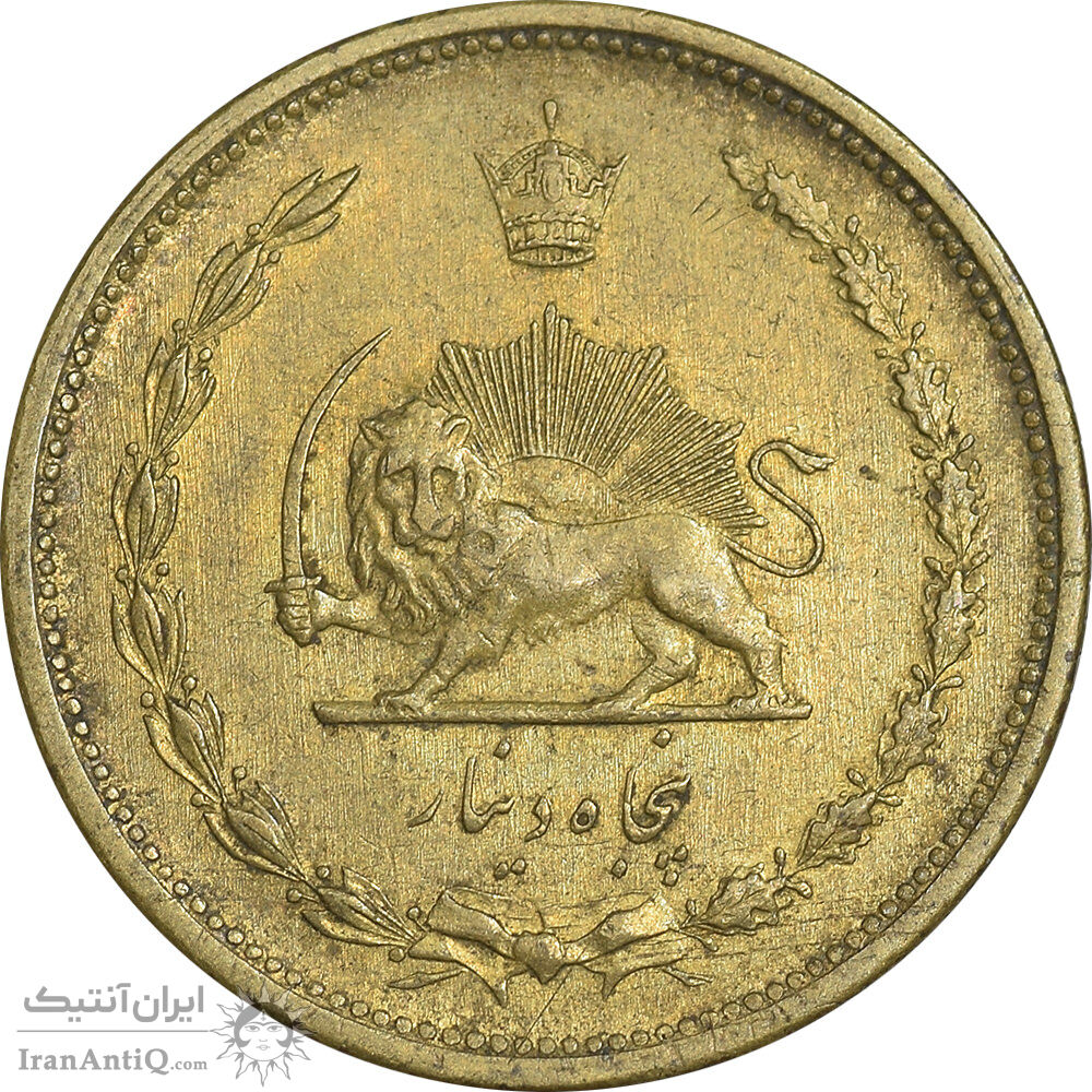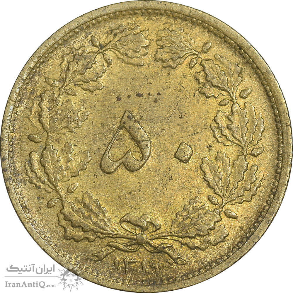 Iran 50 dinars 1319 coin - AU50 - reza shah pahlavi