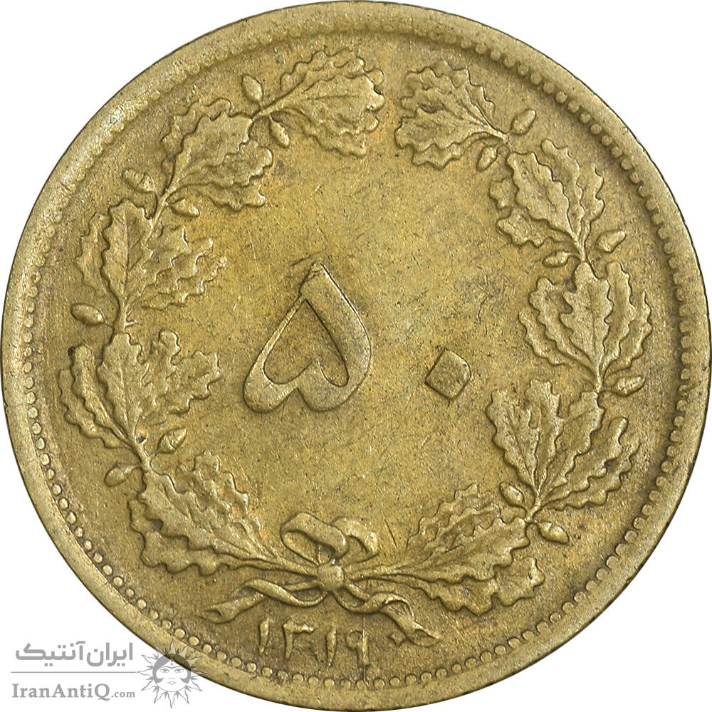 Iran 50 dinars 1319 coin - VF35 - reza shah pahlavi