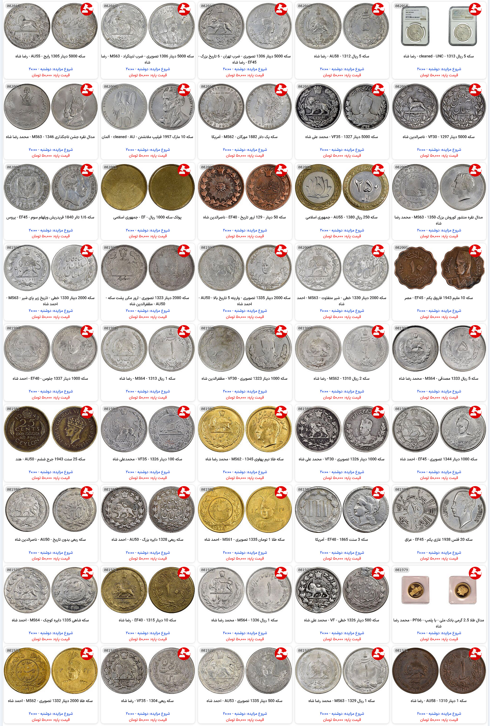 لیست محصولات این دوره از مزایده ایران آنتیک